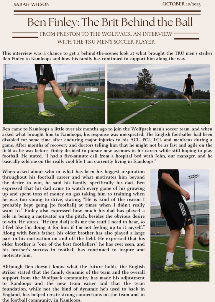 Interview with the TRU Men’s Soccer Player Ben Finley